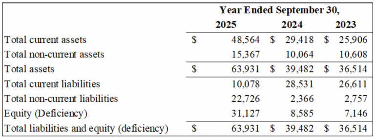 Selected Annual Financial Information for the Years ended September 30, 2025, 2024 and 2023: