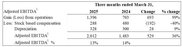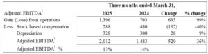 ● Adjusted EBITDA1 was $2.0 million. Q2 2025 was the Company’s eighth consecutive quarter of positive Adjusted EBITDA1.