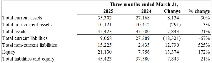 Selected Financial Information for the quarters ended March 31, 2025 and 2024: